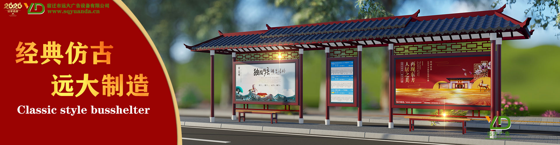 宿遷市遠大廣告設備有限公司是一家專業生產公交候車亭,公交站臺,閱報欄,指路牌,廣告垃圾箱,滾動換 畫燈箱等系列產品廠家!產品多達上百種,亦可根據客戶的需求加工制作。